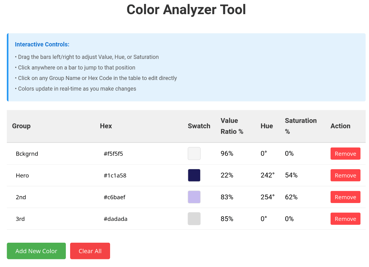 🛠️ Recently, I came across a wonderfully simple technique how to make good color schemes. I have adapted it into a tool you can use too! Check out the Color Analyzer.